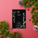 This gorgeous wedding invitation design features a gorgeous green botanical illustration and black background. The frame, your names, and wedding date are all in real pressed foil. This elegant design is a fabulous choice for many styles of events, from classic to boho. You can customise this design even further by adding another photo or additional text to the backer. Foil is available in gold, silver, or rose gold and absolutely shines! Select real foil wedding invitations to add that wow factor!!