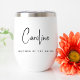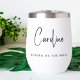 Chic thermal tumbler for the mothers of the bride and groom to celebrate and toast the happy couple with at the engagement party, rehearsal dinner, wedding reception, etc.. Personalise with her name in a modern calligraphy script and her title in elegant serif typography.