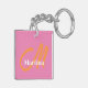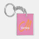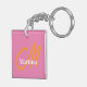 Chic Name Initial Pink Monogram Keychain. Beautiful monogram design in pink and orange with a script and simple typography combination that gives this keychain a unique touch.