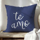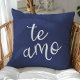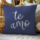 Chic Navy Blue and White Spanish I Love You Te Amo Cushion