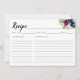 Modern Elegant Floral Watercolor Navy Blue Burgundy Recipe Card