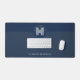 Chic Navy Blue Geometric Modern Monogram Desk Mat
