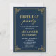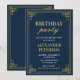 Chic Navy Blue Gold 91st Birthday Party Invitation