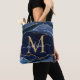 Chic Navy Blue Gold Agate Geode Feminine Monogram Tote Bag