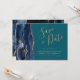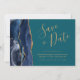 Chic Navy Blue Gold Agate Teal Save the Date Card