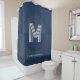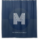Chic Navy Blue Grey Geometric Modern Monogram Shower Curtain