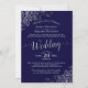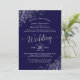 Desperate times call for desperate measures! Due to the ongoing public health emergency, couples are finding creative ways to celebrate their weddings. This beautiful invitation will invite your guests to virtually attend a livestream of your wedding. It features a simple yet elegant design with lacy grey script calligraphy on a navy blue background and frilly silver grey faux foil filigree in the corners. Because love endures!