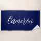 Chic Navy Blue Name Custom Handwritten Script Beach Towel