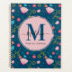 Chic Navy Blue Pink Butterfly Flower Monogram Planner