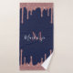Trendy Navy Blue and Rose Gold Glitter Sparkle Drips Bath Towel Set featuring your custom name and monogram on a background of girly faux glitter drips. Perfect for your chic aesthetic.