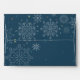 This stylish wintertime A7 card envelope has a navy blue background with an elegant whimsical soft white snowflakes design on the front and backside.