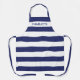 Chic navy blue white stripes custom name monogram apron
