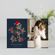 Chic Navy Red Green Photo Peace Christmas Foliage Foil Holiday Card