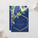 Elegant Chic Navy & White Watercolor Floral Gold Geometric Frame Invitation.