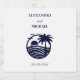 Add a touch of seaside elegance to your celebration with this personalised coastal wedding sparkling wine label, perfect for a beach wedding or summer celebration. This label features a chic graphic design of a navy blue palm tree, the rising sun above the ocean, and peaceful birds in flight, all surrounded by a stylish navy circle set against a crisp white background. Ideal for a palm tree wedding or tropical event, this coastal design brings a refined yet relaxed vibe to your sparkling wine bottles—beautifully complementing your elegant seaside wedding theme.