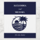 Add a touch of seaside elegance to your celebration with this personalised coastal wedding wine label, featuring a chic graphic design of a navy blue palm tree, the rising sun above the ocean, and peaceful birds in flight—all encircled by a stylish navy border. Set against a crisp white and navy striped background, this design captures the serene beauty of the sea in a modern, tropical style. Perfect for a palm tree wedding, beach wedding, or summer celebration, this elegant wine label brings coastal charm to your special day.
