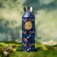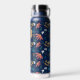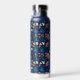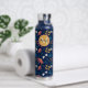 Chic Navy Yellow Monogram Floral Pattern Custom Water Bottle