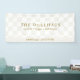 The elegant checker-pattern business banner features a light tan retro checker background with gold elegant text. Add your business name and tagline to the front of the featuring a sleek background with elegant serif font and your contact information to the bottom strip. Perfect for personal brands, boutiques and cafes and more!