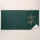 Chic Newlywed Gold Monogram Script Dark Green Beach Towel