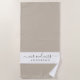 Chic grey and white monogrammed beach towel with the text Mr and Mrs in elegant script. You can customise this elegant beach towel with your married name. Perfect gift for the newlywed couple. The colour shiitake is used for this design. Exclusively designed for you by Happy Dolphin Studio.