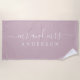 Chic pastel purple monogrammed beach towel with the large text Mr and Mrs in white elegant script. You can customise this elegant beach towel with your married name. Perfect gift for the newlywed couple. Exclusively designed for you by Happy Dolphin Studio.