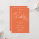 Chic and elegant bold retro orange and white all in one calligraphy wedding invitation with rsvp, accommodations, details, and more info. With a beautiful brush calligraphy script.
