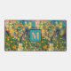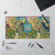 Chic orange blue turquoise sicilian citrus collage floral tiles monogram Desk Mat. Chic floral botanical citrus garden pattern inspired by the summer bright italian themed art of majolica. Beautiful Sicilian ceramic tiles in pink yellow and blue. A fun style bright design for home decor, clothes, mobile and Ipad cases, invitations and much more. You can change all text colours and fonts, click to customise further underneath the text customisation area this will take you into the design tool. A unique gift for birthdays, holidays and any special occasion. Whether for valentines day, Christmas or as a gift in general it makes a great gift idea