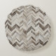 Chic cream brown chevron pattern Round Pillow