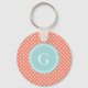 Chic orange herringbone geometric pattern monogram key ring