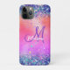 Chic orange pink iridescent faux glitter monogram Case-Mate iPhone case