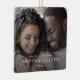This chic our first Christmas couples photo overlay ceramic ornament is the perfect modern Christmas tree decoration. The simple design features classic minimalist white typography with a rustic boho feel. Customisable in any colour. Personalise your double-sided keepsake ornament with a photo, your names and the year.