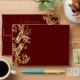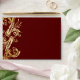 Lovely wedding invitation envelope done in a rich oxblood red with a elegant gold tone flourish, on the left front and back of the envelope. The inside of the envelope is done in a white, grey, golden distressed flourish design. Personalise the light golden yellow text, on the back flap to suit your needs. Lovely finishing touch to our Chic Oxblood and Gold Wedding Invitation.