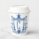 These chic pagoda monogram cups are perfect to use for entertaining and make an excellent hostess gift. The pagoda design and the monogram are in a navy blue on white.