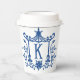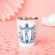 These chic pagoda monogram cups are perfect to use for entertaining and make an excellent hostess gift. The pagoda design and the monogram are in a navy blue on white.