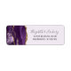 The left-hand edge of this elegant modern wedding invitation return address label features a purple watercolor agate border trimmed with faux gold glitter. The customizable text combines charcoal gray handwriting and copperplate fonts on a pale purple background.