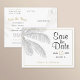 This chic wedding save the date postcard features gold accents and a palm frond. Use the design tools to customise it and make it uniquely yours! For coordinating items, please browse our shop. And please get in touch if you'd like another item with this theme that you don't see in our selection-we'd be thrilled to make it for you.