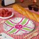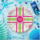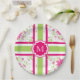 LOVELY 561 HOT PINK AND 60 GREEN TILED FLORAL AND STRIPES ON WHITE WITH HOT PINK TAG AND WHITE MONOGRAM. PERFECT FOR A SUMMERTIME OCCASSION INDOORS OR OUT! MIX AND MATCH WITH COORDINATED NAPKINS, PAPER CUPS, AND HOME ACCESSORIES INCLUDING THROWS, INDOOR AND OUTDOOR PILLOWS AND COASTERS IN SOLIDS, MONOGRAMED, STRIPES AND FLORALS. ALSO SEE "CHIC HOME AND GARDEN COLLECTION #1 561 HOT PINK" FOR ALL ITEMS AVAILABLE! SO PRETTY.
