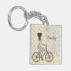 Chic Paris Girl Riding Bike Dotty Personalised Key Ring