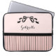 Chic Parisian Pink Pinstripes Black Bow and Name Laptop Sleeve
