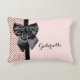 Chic Parisian Pink Polka Dots Black Bow and Name Decorative Cushion