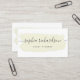 These elegant business cards feature a delicate, light yellow pastel brush stroke on a simple, white background colour. Your name appears in trendy handwritten script typography. There is also room to include your social media information on the back.