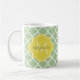 Chic Pastel Green Quatrefoil Yellow Name Monogram Coffee Mug