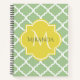 A chic pastel spring green quatrefoil standard size notebook with a bright yellow monogram badge you can personalise by adding your name and initial to. This is part of the Nile Green and Meadow Lark Yellow Spring Collection.