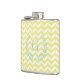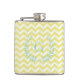 Chic Pastel Yellow Teal Chevron Custom Monogram Hip Flask