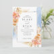 Chic Peach Blush Floral, Blue Watercolor Wedding Invitation