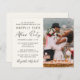 Budget-friendly light cream elopement or "we tied the knot" private wedding announcement and reception invitation featuring your photo and "Happily Ever After Party" in a mix of simple typography and a chic script. Personalise your party or reception details and add your names in a signature-like script.