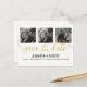 Bold Minimal Modern BLACK SAVE THE DATE postcard featuring a PRINTED GOLD FOIL Modern script on the front , 3 engagement photos and a template postcard on the back.