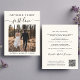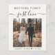 Budget-friendly light cream elopement or private wedding announcement and casual reception invitation that features your photo, "Nothing Fancy Just Love" in simple typography and an elegant script with swashes, and your names and wedding or reception date. On the back, input your wedding website address to create a QR code for your guests to scan to RSVP online and obtain wedding details and add your names in a signature-like script. This budget semi-gloss paper is similar in weight to photo paper. A larger 5x7 traditional card stock version is also available (message us for the link).