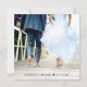 Chic square wedding announcement and reception invitation featuring "Happily Ever After Party" in a contemporary script and bold modern lettering, your personalised invitation and your names in a signature-like script. The back features your photo and your names and date(s) joined together by a heart (if your wedding and reception dates are different, keep your first names on the top line and your two dates separated by the heart on a second line).