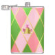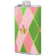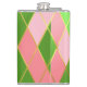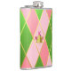Chic Pink and Green Argyle Monogrammed Hip Flask